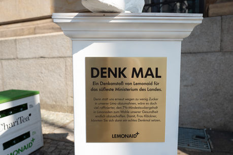 A sugar statue of Minister Julia Klöckner was placed right in front of the Ministry of Nutrition – sending a clear message about the absurdity of the complaint.